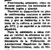 En el terreno educativo El Sol informó del curso que había organizado el Centro de Estudios Internacionales y Ahora dio noticia del concurso abierto por la Junta de Relaciones Culturales del Ministerio de Estado para proveer una cátedra de Lengua y Literatura españolas en la Universidad de #Panamá.