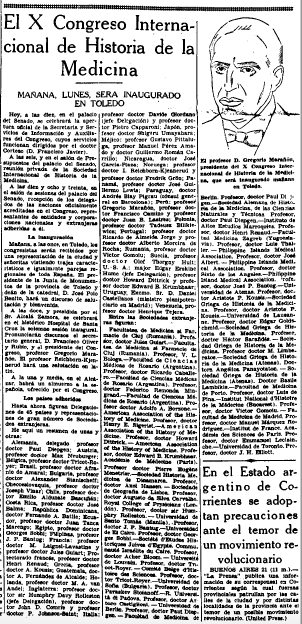 Las informaciones científicas de esa jornada estaban dedicadas mayoritariamente a dar cobertura a la inauguración del #XCongresoInternacionaldeHistoriadelaMedicina que se iba a celebrar al día siguiente en #Toledo, en el #hospitaldelaSantaCruz.