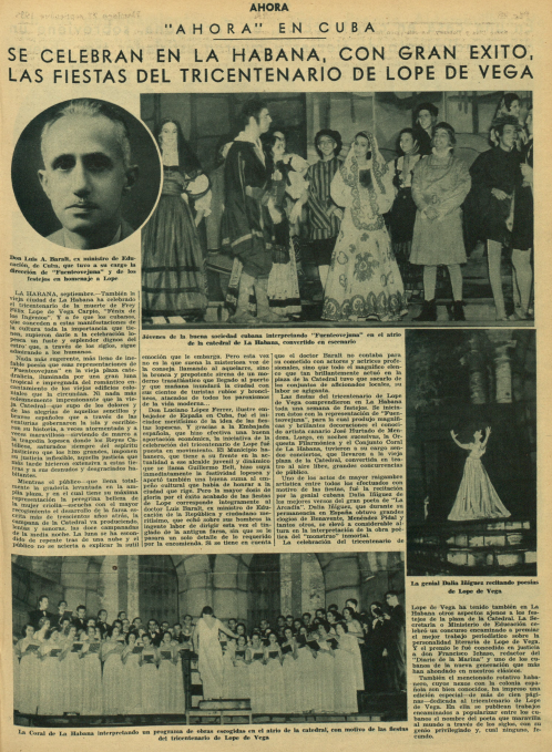 En el ámbito cultural Ahora ofreció a sus lectores un amplio reportaje sobre la celebración en #LaHabana de una serie de actos dedicados a #LopedeVega con motivo del #tricentenario de su muerte.