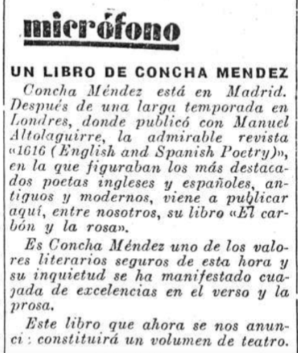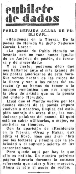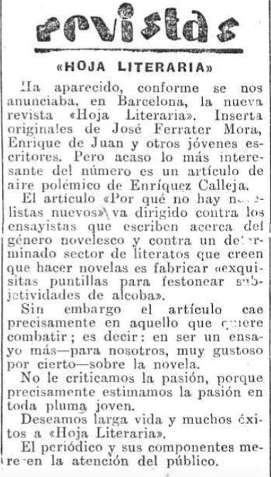 En la hoja se insertaron otras muchas informaciones: el último libro de #ConchaMéndez, el sumario de una nueva revista barcelonesa Hoja literaria, la aparición de Residencia en la tierra de #Neruda, y un balance gráfico de la semana literaria por el dibujante #SantaCruz.