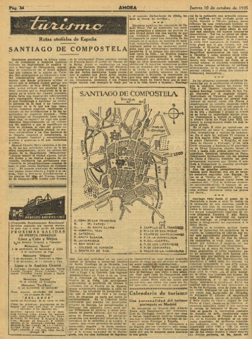 Las páginas dedicadas a la promoción del #turismo como la que ofreció ese día #Ahora a sus lectores sobre Santiago de Compostela eran vehículos propagadores de conocimientos geográficos.