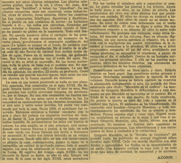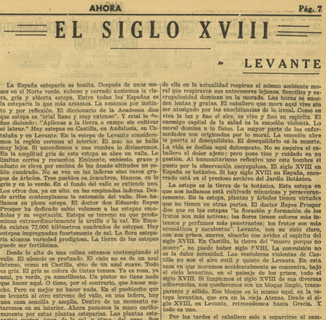 El propio #Azorín, lector de obras de científicos coetáneos como el naturalista #EduardoReyesProsper y #GregorioMarañon, alentaba a sus lectores en el diario Ahora a viajar por el oriente de la Península ibérica, conocer mejor la España esteparia y deleitarse en ambientes que evocaban la Ilustración española, cuando se dio un gran impulso al estudio de la #botánica
