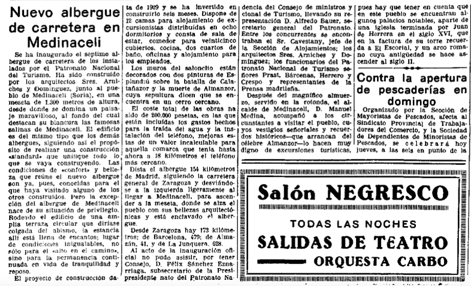 Se complementó esa atención brindada a la promoción del conocimiento de la geografía de ciudades de España con la cobertura dada por los diarios La Libertad y La Voz a la inauguración en la villa soriana de #Medinaceli de un nuevo albergue construido por el Patronato Nacional de #Turismo.