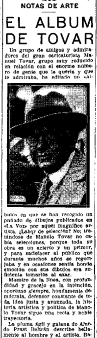 La Libertad prefirió hacer publicidad del Album Tovar, como gesto de solidaridad hacia la familia de ese gran caricaturista.
