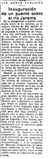 La Libertad se hizo eco de la inauguración de un puente sobre el río #Jarama, en las cercanías de #SanMartindelaVega y Ahora además de ofrecer una fotografía de esa obra pública también dio noticia del primer viaje en tierras catalanas de un automotor de la compañía M.Z.A.