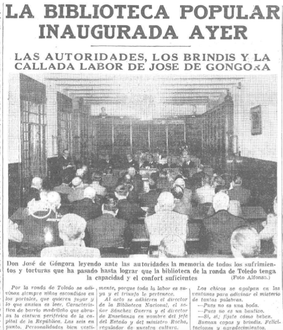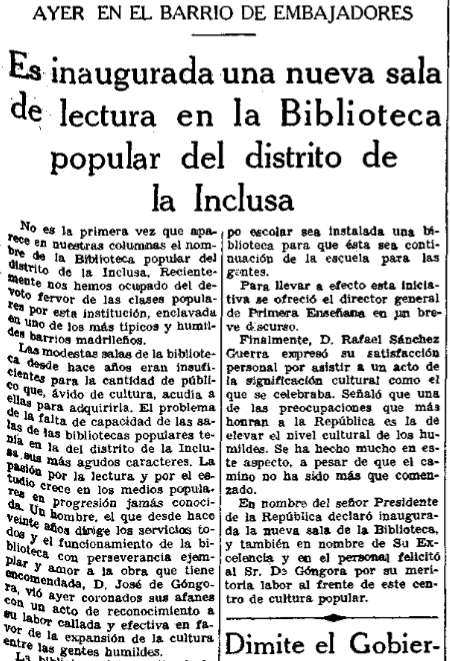 En el amplio campo de la cultura El Sol y La Voz dieron cobertura a la inauguración de una nueva sala de lectura en la biblioteca popular del distrito de la Inclusa en #Madrid para afrontar la demanda de libros por parte de determinados sectores de la sociedad madrileña.