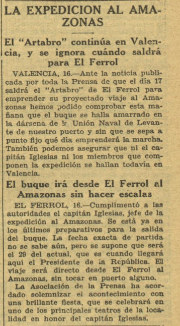 Tres periódicos, Ahora, La Libertad y La Voz , ofrecieron noticias sobre los preparativos de la expedición al #Amazonas.