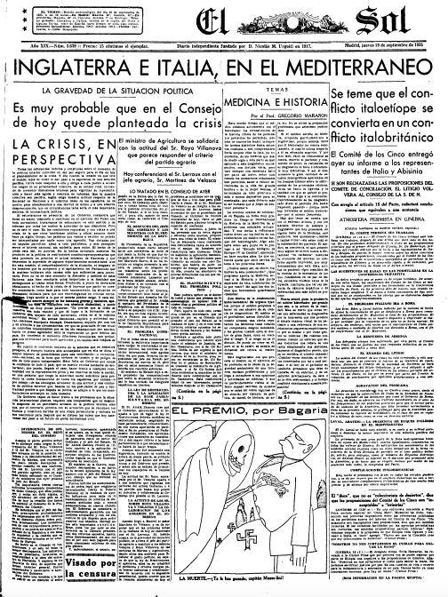 Esos periódicos contribuían asimismo a estimular los conocimientos geográficos, bien informando a sus lectores de las características de los lugares en los que se estaba desarrollando el conflicto italiano-británico en el Mediterráneo sobre el control de #Abisinia, o impulsando campañas para la promoción del turismo.