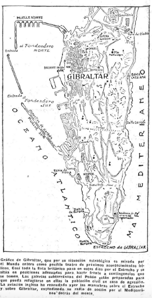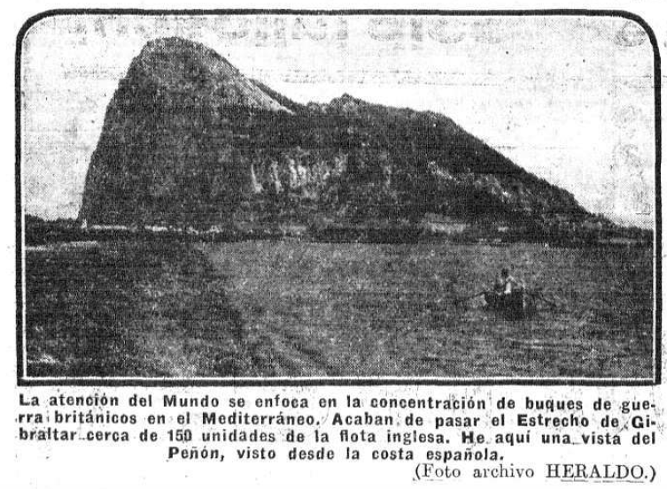 Así Heraldo de Madrid publicó en su última página un gráfico de la ciudad de #Gibraltar y una foto de su peñón con motivo del paso de la flota británica de guerra por ese puerto.
