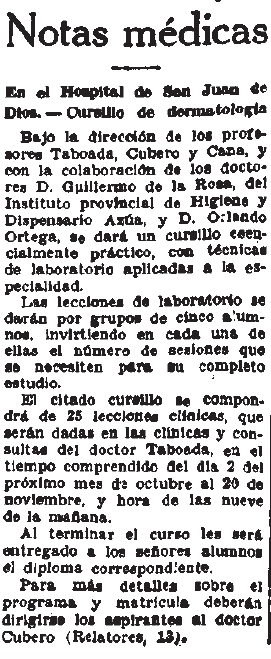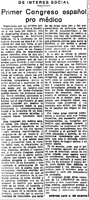 En La Libertad el doctor #LuisMdeCastro presentaba el programa de trabajo del #congresoProMédico que se iba a celebrar en #Zaragoza en el mes de octubre de 1935. En El Sol se presentaba un cursillo de #Dermatología que se iba a celebrar en el #HospitaldeSanJuandeDios.