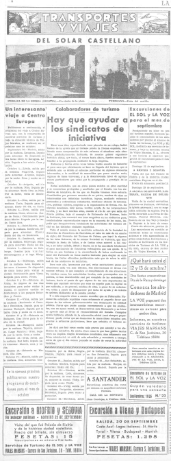 También La Voz publicó su página semanal dedicada a #Transportes y #viajes en la que se hacía publicidad de ciudades castellanas y se instaba a apoyar a los sindicatos de iniciativas turísticas.