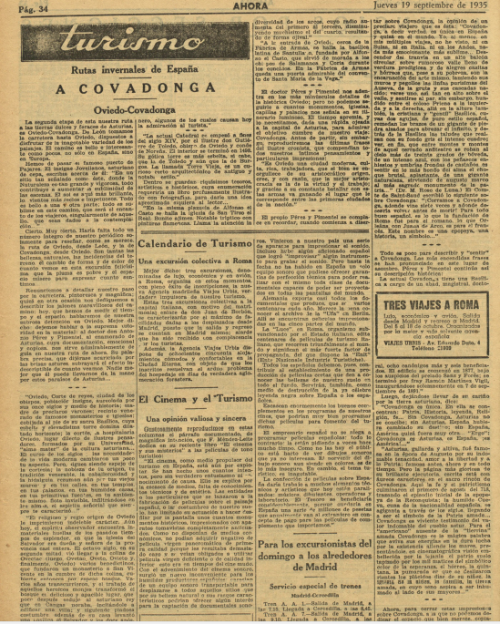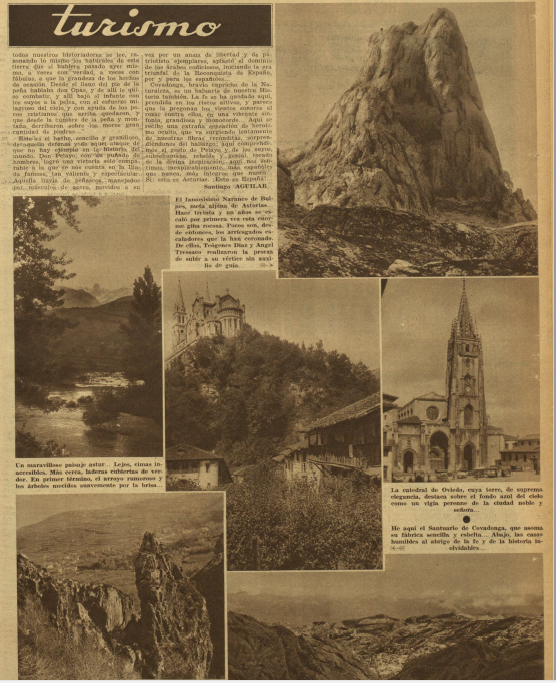 En la sección dedicada por Ahora al turismo #SantiagoAguilar firmó un amplio reportaje sobre Asturias, y ese periódico reprodujo un párrafo del reciente libro publicado por #FernandoMéndezLeite (1905-1986) en su libro El cinema y sus misterios en el que ese autor se lamentaba de la incapacidad de la incipiente industria cinematográfica española para promocionar el turismo en este país.