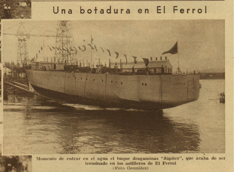 También Ahora ofrecía cobertura a la botadura en #ElFerrol del dragaminas Júpiter. Se entregaría a la marina franquista el 31 de marzo de 1937.