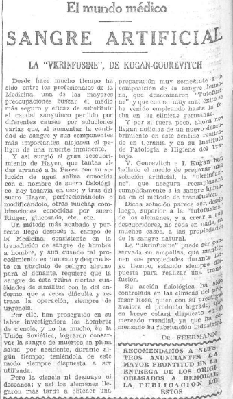 En la sección "El mundo médico" de La Voz su colaborador el #DrFeermann presentó un descubrimiento realizado por #VGourevitch e #IKogan en el #InstitutodePatologíaeHigienedelTrabajo de #Ucrania.
