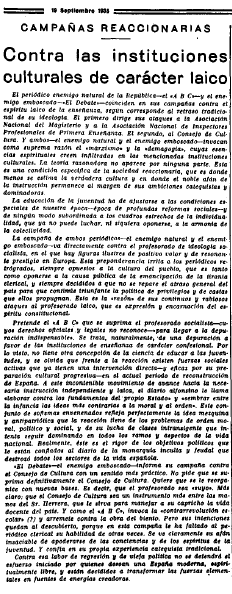 La prensa de izquierdas continuó su campaña de denuncias contra los ataques que estaban recibiendo los representantes de una educación laica.