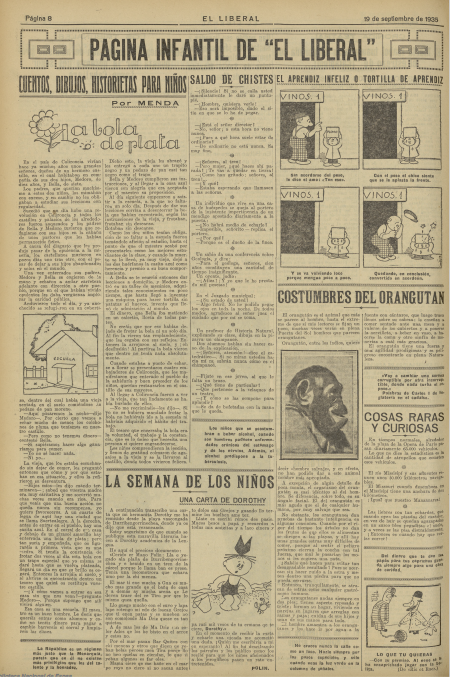 En ese marco de la preocupación por la #educacióninfantil destaca la información proporcionada por La Voz en su página dedicada a asuntos culturales a los últimos cuentos para niños publicados por la #editorialCalleja, así como la página infantil de El Liberal en la que se explicaban las costumbres del orangután además de hacer propagada republicana.