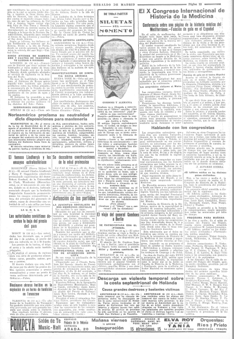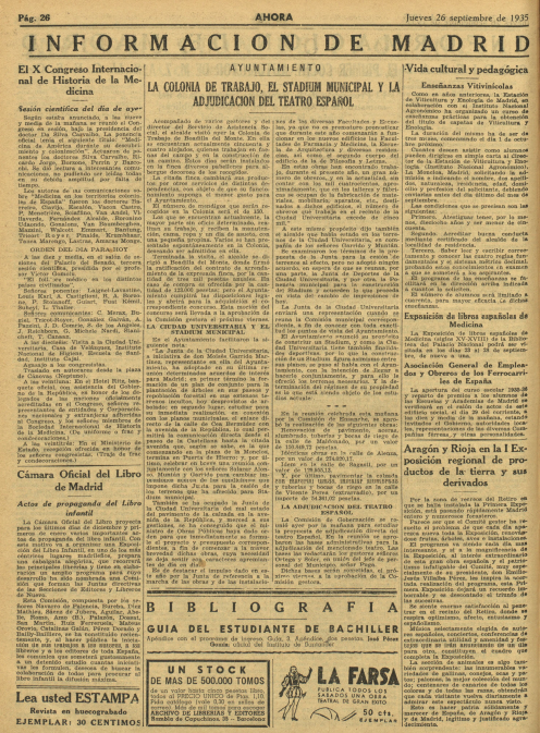 En el campo educativo El Sol destacó que en las obras de la #CiudadUniversitaria de Madrid -que fueron visitadas por los integrantes del Congreso internacional de Historia de la Medicina- trabajaban 6.500 obreros.