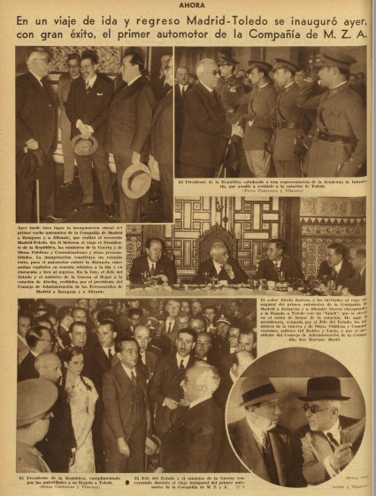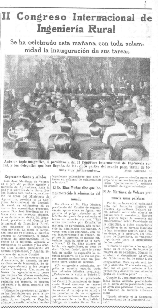 En el mundo de la tecnología Ahora ofreció un reportaje gráfico de la inauguración por parte del presidente de la República del primer viaje de un automotor de la Compañía M.Z.A. entre Madrid y Toledo. Y los diarios vespertinos Heraldo de Madrid y La Voz dieron cobertura a la inauguración en la mañana de aquel día del Segundo #Congresointernacional de #IngenieríaRural en el salón de actos del Ministerio de Agricultura.