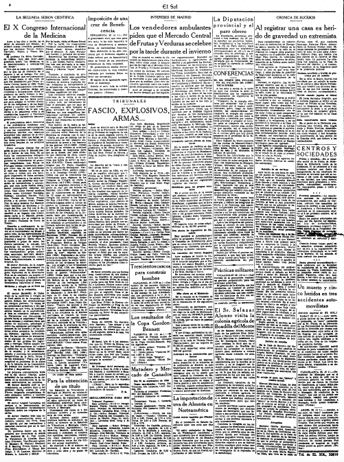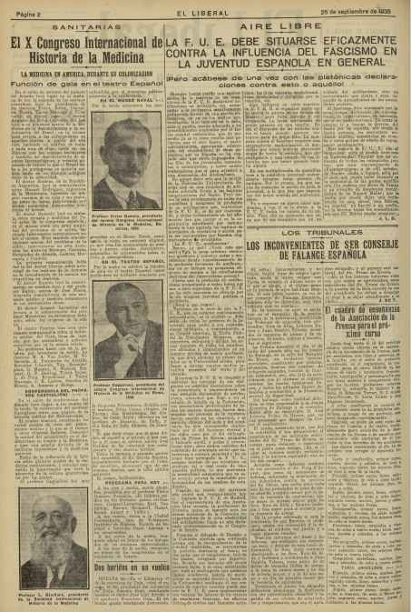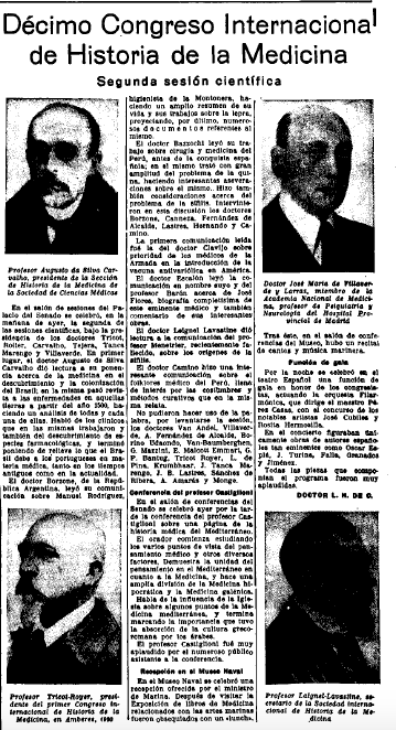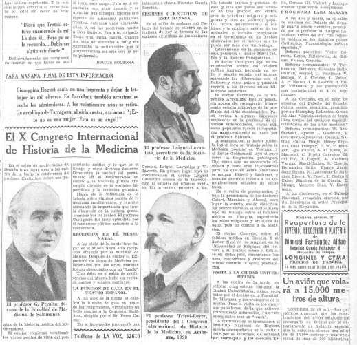 En el ámbito científico durante un día más los diversos diarios dieron amplia cobertura al desarrollo de las sesiones científicas del X #CongresoInternacional de #HistoriadelaMedicina. El colaborador de Heraldo de Madrid, el doctor #AlvarezSierra llamó la atención de la ausencia en el congreso del único catedrático existente en las universidades españolas de esa disciplina, como era el profesor #GarcíadelReal, lo que sorprendió a los congresistas extranjeros.