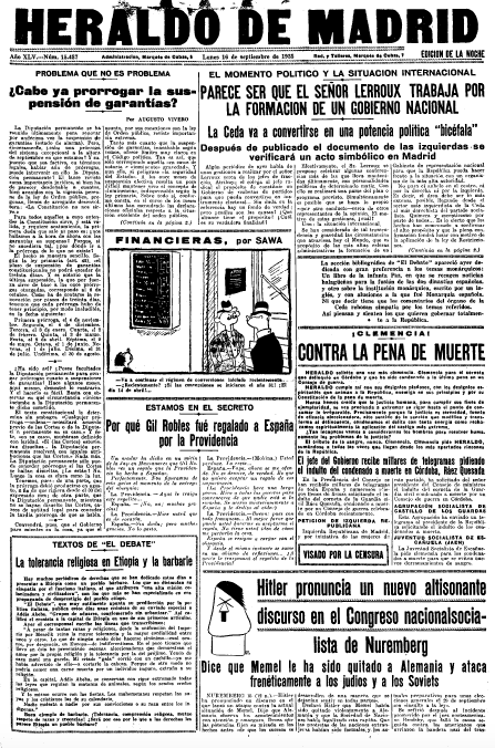 En el aspecto educativo seguía la polémica sobre el #ConsejoNacionaldeCultura, organismo sobre el que la CEDA había lanzado una campaña de descrédito. En su última página Heraldo de Madrid publicó un contundente suelto de denuncia de esa campaña.