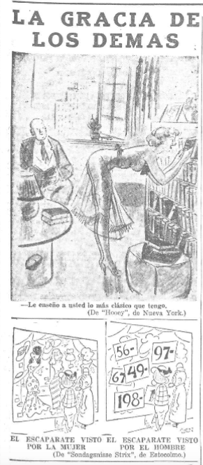 Reproduzco finalmente las notas de humor de La Voz, que se inspiraba en su sección "La gracia de los demás" de otros medios de comunicación de diversas partes del mundo. En tales viñetas se manifiesta en muchas ocasiones el machismo de sus redactores, que presumían de ideología progresista.