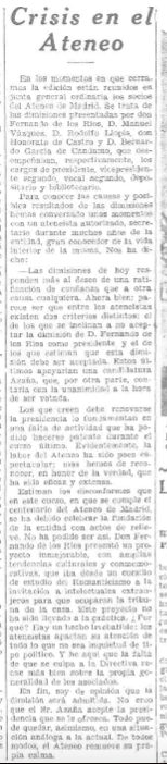 Asimismo La Voz dio cobertura al recital dado en el Ateneo Enciclopédico Popular de #Barcelona por #MargaritaXirgú de poemas de #GarcíaLorca, como un ejemplo de la colaboración cultural entre andaluces y catalanes, y prestó atención a la crisis existente en los órganos de gobierno del #Ateneo de #Madrid.