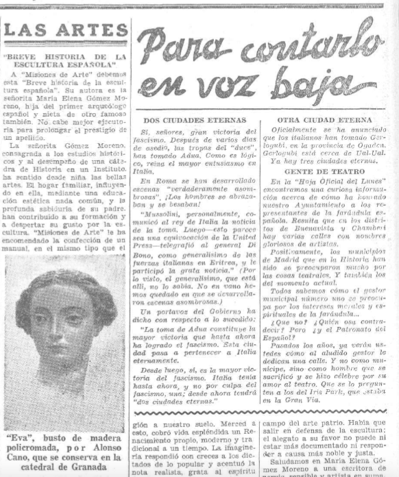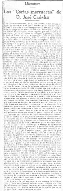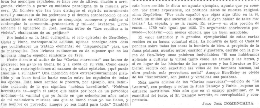 En el campo cultural el diario La Voz abrió su página cultural a las reseñas de #JuanJoséDomenchina y #AngelVegué a una nueva edición de Cartas Marruecas de #Cadalso hecha por #JuanTamayoyRubio, y a una Breve historia de la escultura española por #MaríaElenaGómezMoreno.