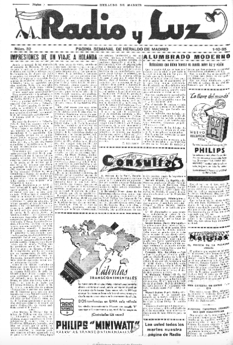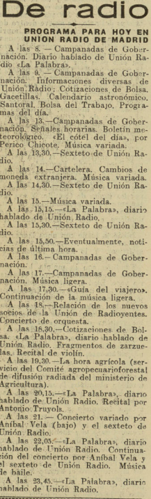 La #radio seguía penetrando en los hogares españoles. Heraldo de Madrid ofrecía su suplemento semanal "Radio y Luz" y varios diarios ofrecían la programación de Unión Radio de #Madrid en la que destacaba el programa de popularización de conocimientos agronómicos "La hora agrícola".