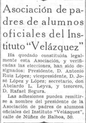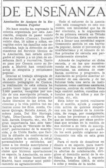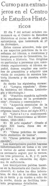El Sol dio cuenta de los cursos para extranjeros que impartiría el #CentrodeEstudiosHistóricos de la #JAE; de las actividades de la #Asociación de Amigos de la #EnseñanzaPopular, apoyadas por relevantes personalidades políticas como #ManuelAzaña y científicas como el investigador #DelRíoHortega, el ingeniero #Vighi y el geógrafo #Doporto; e informó de la constitución de la Asociación de padres del #InstitutoVelázquez de #Madrid.