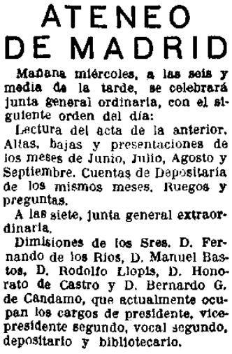 La Libertad prestó atención a la dimisión de la junta directiva del #Ateneo de #Madrid, que presidía #FernandodelosRíos.