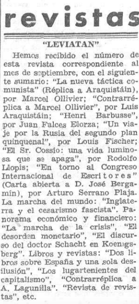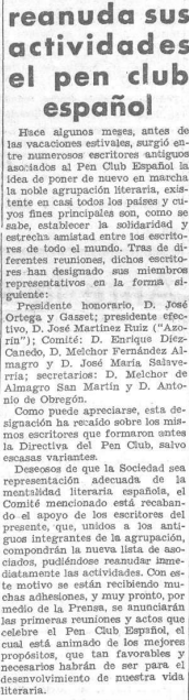 El Sol insertó un articulo de su colaborador asturiano Juan Antonio #Cabezas sobre la ciudad de #Oviedo, informó de la reanudación de actividades del #PenClubespañol, bajo la presidencia honoraria de #OrtegayGasset y la efectiva de #Azorín; y en su sección de libros dio cuenta de los sumarios de los últimos números de la revista socialista #Leviatán y de la #Revistabimestrecubana.