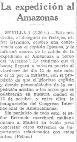 Abundaron las informaciones acerca de la inminente partida al continente americano de la #expedicióncientífica liderada por el capitán de aviación #FranciscoIglesias, que finalmente no se llevaría a cabo.