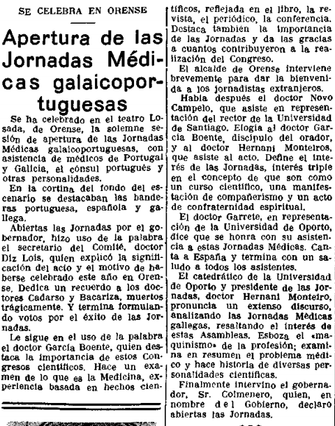 También se prestó atención por parte de La Libertad y Heraldo de Madrid a la inauguración y desarrollo en el teatro Losada de #Orense de unas #jornadasmédicas galaico-portuguesas. La Libertad también informó del viaje a #EstadosUnidos del doctor #EnriqueSlocker que encabezaba la delegación española que iba a participar en un congreso internacional médico militar.