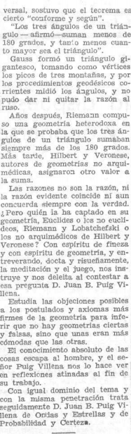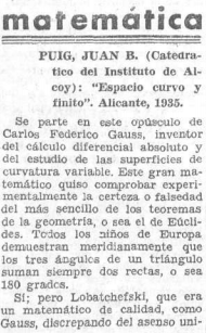 Un colaborador de El Sol hizo una reseña del libro del catedrático del Instituto de #Alcoy #JuanBPuigVillena (#Xátiva, 1891-#México 1942) Espacio curvo y finito, que había sido publicado en Alicante. Tal y como señalan Néstor Herrán y Xavier Roqué en su libro La física en la dictadura. Físicos, cultura y poder en España, 1939-1975, p. 165 este profesor, que se había licenciado en Ciencias Químicas por la Universidad de Zaragoza y que era también maestro nacional de primera enseñanza, escribió ese mismo año una interesante Breve idea de la Mecánica ondulatoria. La guerra civil le condujo a Valencia donde fue catedrático de Física y Química del #InstitutoObrero de esa ciudad, donde sus alumnos apreciaron sus capacidades docentes como revela esta breve noticia biográfica inserta en el sitio web de la Asociación Cultural Instituto Obrero de Valencia. (ver aquí).