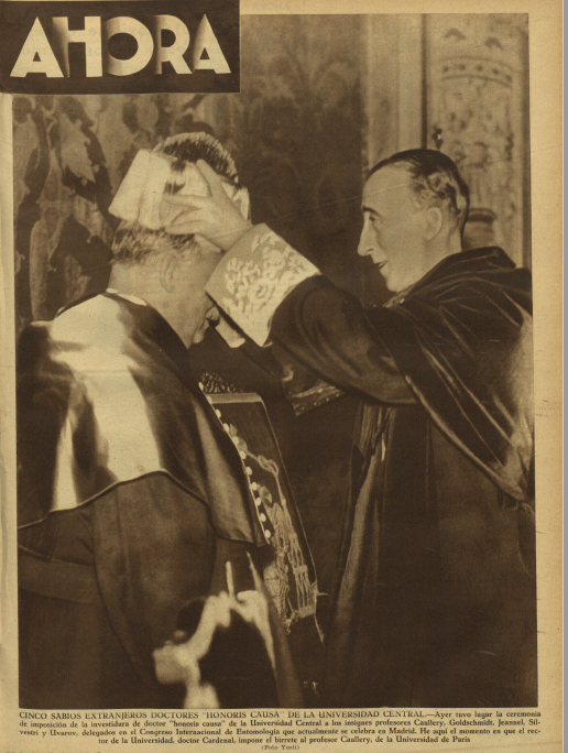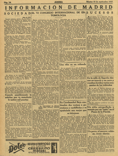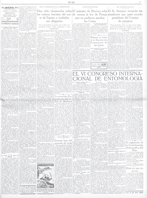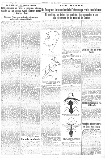 - informaciones sobre el desarrollo del sexto congreso internacional de entomología en las que llama la atención el artículo satírico de #JoséDíazMorales (1908-1976) con caricaturas de #ManueldelArco (1909-1971) en las páginas del Heraldo de Madrid.