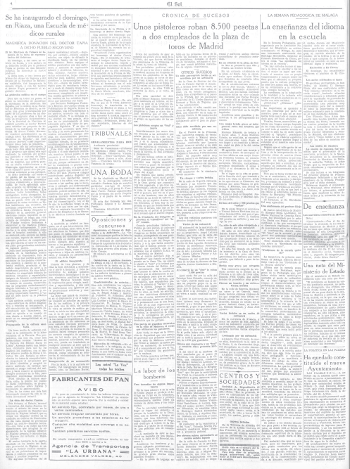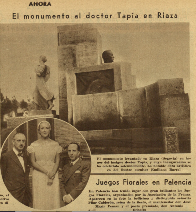 - el seguimiento en varios periódicos de la inauguración en #Riaza (Segovia) de un hospital y escuela de médicos rurales sufragada el doctor #JoséGarcíaTapia al que se le rindió un homenaje en esa villa segoviana y se sufragó un busto suyo hecho por el escultor #EmilianoBarral (1896-1936).