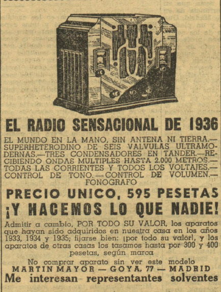 - publicidad extraída del diario Ahora sobre la #radio , un instrumento de comunicación que se expandía rápidamente en los hogares de un determinado nivel de renta económica, pues su precio era elevado.
