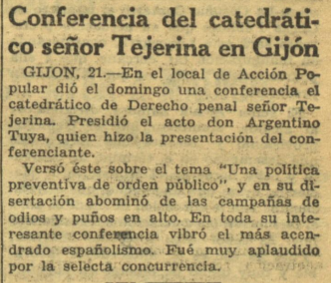 Científicos y catedráticos universitarios participaban en actividades políticas, como se aprecia en la lista que dio El Liberal de personalidades republicanas asistentes al mitin de Azaña en el campo de Comillas, o en la información proporcionada por Ahora de una conferencia impartida por el catedrático de Derecho Penal, #Tejerina, en el local del partido Acción Popular de #Gijón.