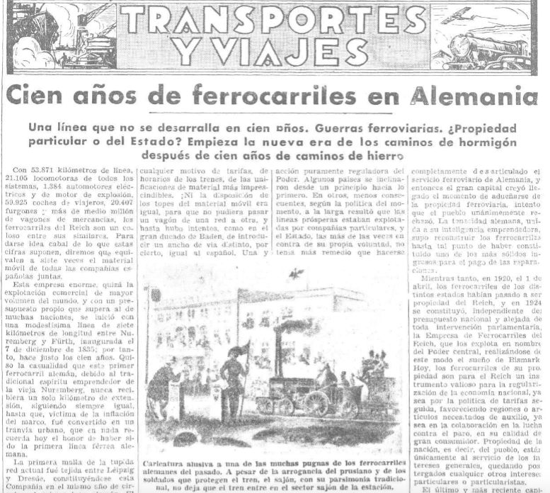 En el mundo de las técnicas La Voz insertó un reportaje sobre los ferrocarriles alemanes que cumplían su centenario y Ahora se hizo eco de un homenaje de un grupo de ingenieros navales a su compañero de profesión #NicolásFrancoBahamonde que acababa de ser nombrado Director general de Marina Civily Pesca cuando era un destacado militante del Partido Agrario del que llegó a ser secretario general y que presidía #JoseMartínezdeVelasco.