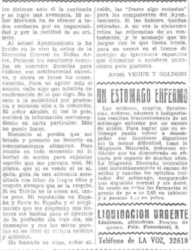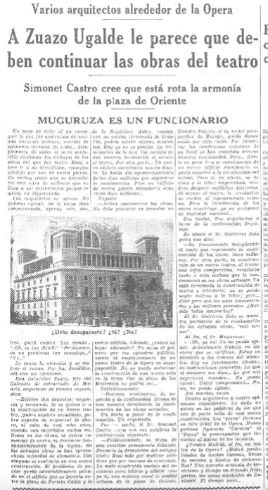La Voz por su parte le dio la palabra a su crítico de arte #AngelVegué que tenía una polémica con el alcalde de #Toledo sobre la protección del patrimonio histórico cultural de esa ciudad monumental. Y pulsó la opinión de varios arquitectos acerca de las medidas a tomar sobre el madrileño teatro de la #Opera, cuya reforma era inacabable y donde el Estado había hecho ya inversiones millonarias.