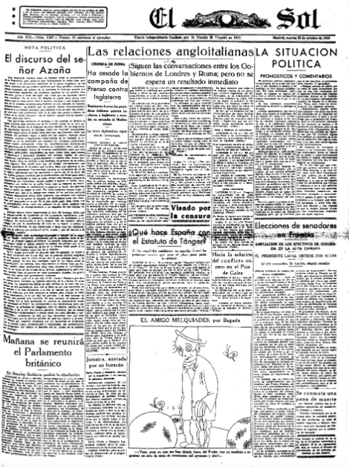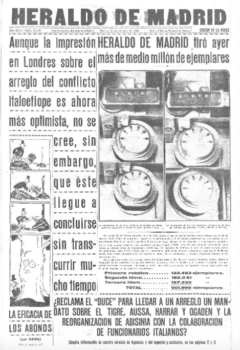 La industria de material escolar seguía ofertando sus productos que iba actualizando, como se aprecia en este anuncio que publicó ese día El Sol referente a la presentación del mejor #mapa italiano sobre #Abisinia.