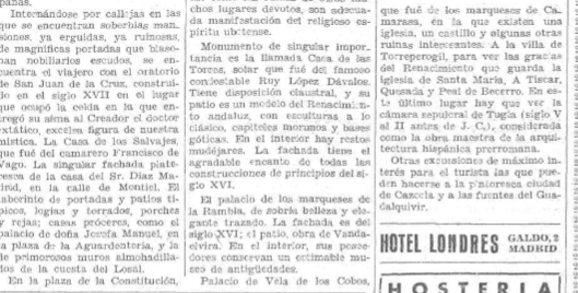 Ese diario asimismo en su página dedicada al #turismo y #viajes hacía propaganda de conocimientos geográficos como se aprecia en la información que ofreció ese día sobre la ciudad de #Ubeda.