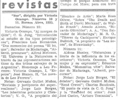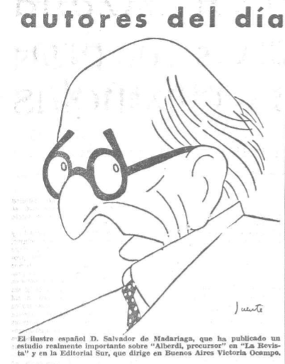 En el campo de la cultura #SalvadordeMadariaga fue nombrado autor del día por El Sol por un trabajo sobre el intelectual y político argentino #JuanBautistaAlberdi, publicado en las páginas de la revista #Sur, de la que se ofrecían los sumarios de sus últimos números.