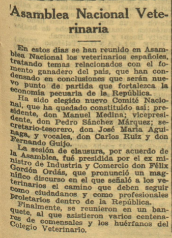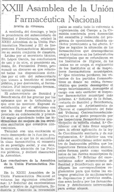 El Sol y Ahora informaron, por su parte, de las reuniones científicas y de carácter profesional que habían celebrado farmacéuticos y veterinarios.