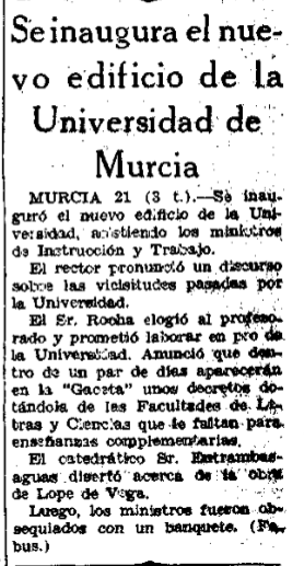 En el terreno educativo la noticia del día fue la inauguración de un nuevo edificio de la #Universidad de #Murcia, de la que informaron El Sol y Ahora.