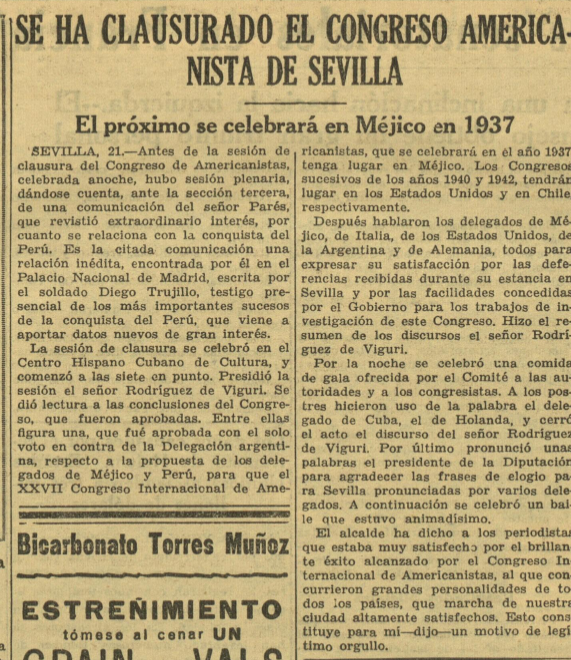También Ahora y El Sol informaron de la clausura del #Congresointernacional de #Americanistas que había tenido lugar en #Sevilla.