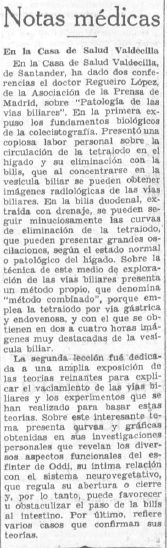 También El Sol informaba en su sección Notas médicas de unas conferencias impartidas en la casa de salud de #Valdecilla en #Santander por el doctor de la #AsociacióndelaPrensadeMadrid #RegueiroLópez que disertó sobre #Patología de las vías biliares.
