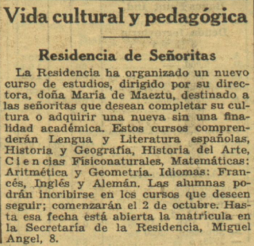 Ahora, en su sección Vida cultural y pedagógica, también anunció el inicio del curso en la #ResidenciadeSeñoritas.