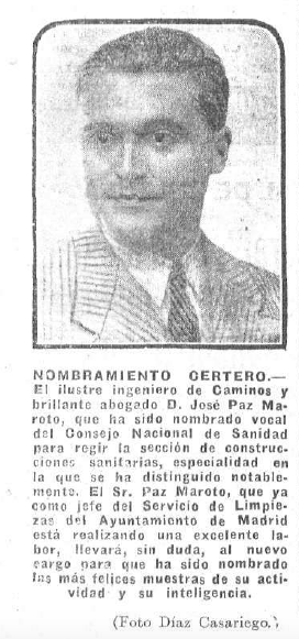 Por su parte Heraldo de Madrid se congratuló del nombramiento de #JoséPazMaroto, ingeniero de caminos y abogado, como vocal del #ConsejoNacionaldeSanidad para regir la sección de construcciones sanitarias.