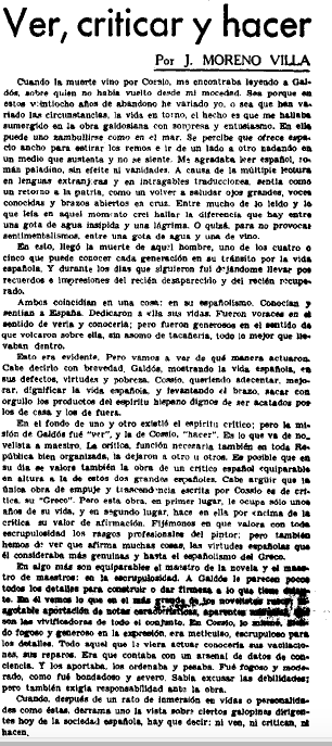 El Sol ofreció su primera página a #JoséMorenoVilla quien con el título "Maneras. Ver, criticar y hacer" publicó un homenaje a #Galdós y #Cossío.